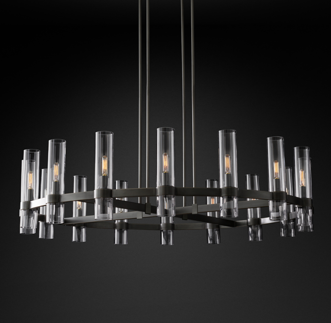 Restoration hardware ravelle round chandelier bronze. Crafted of solid steel, unadorned metal bands hold the slender glass cylinders in place, in a state of perfect Searching for the perfect ceiling lighting? Browse furniture, lighting, bedding, rugs, drapery and décor. Free shipping on all textiles.
